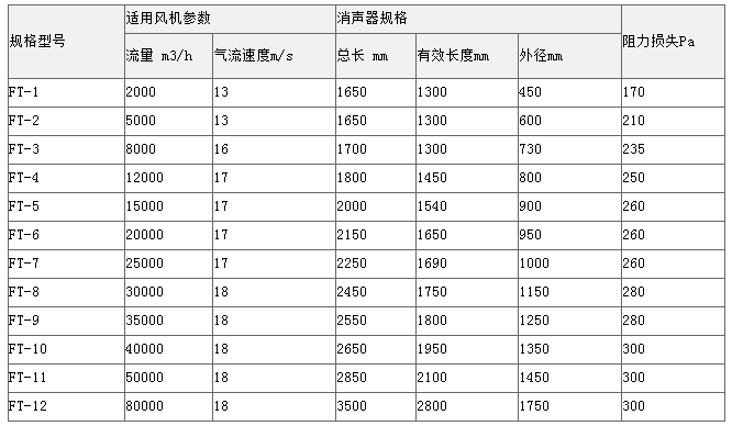 三、風(fēng)機(jī)消音器型號(hào)及參數(shù)
